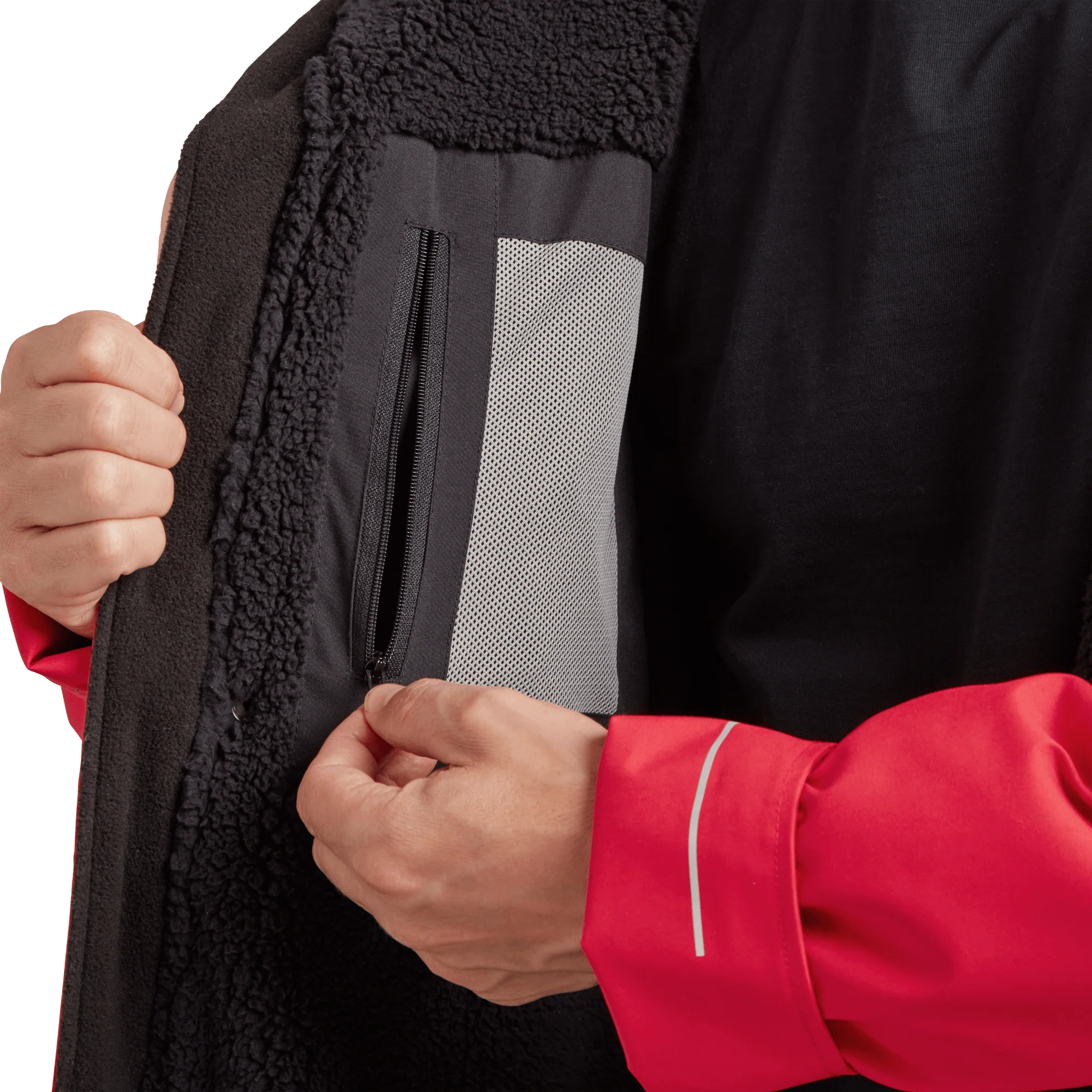 The sherpa fleece with it’s deep pile traps air, which improves insulation and feels super soft next to your skin.